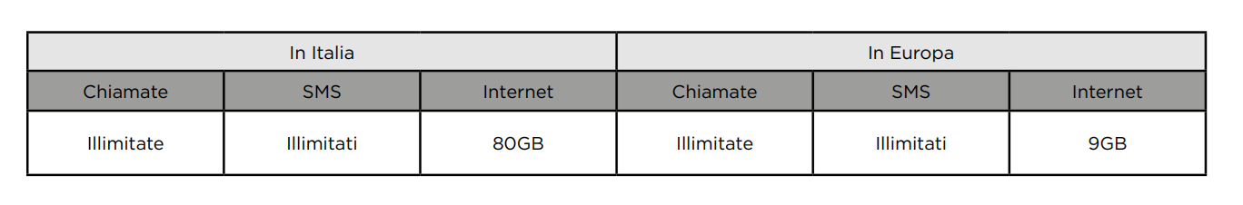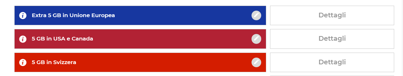 - Sono disponibili opzioni per avere Giga extra in UE, Svizzera, Usa e Canada